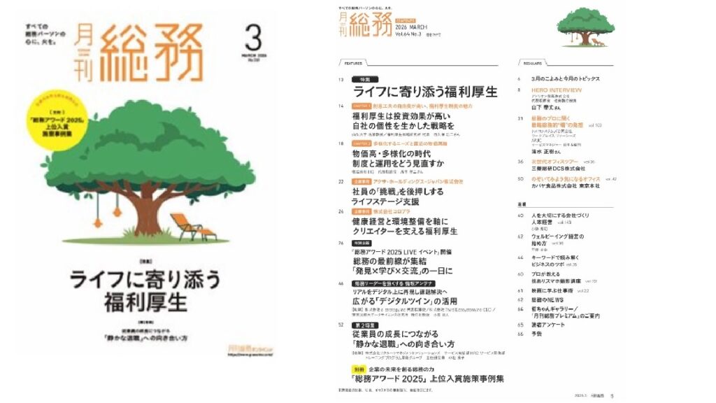 「月間総務」に取材していただきました。特集『ライフに寄り添う福利厚生』