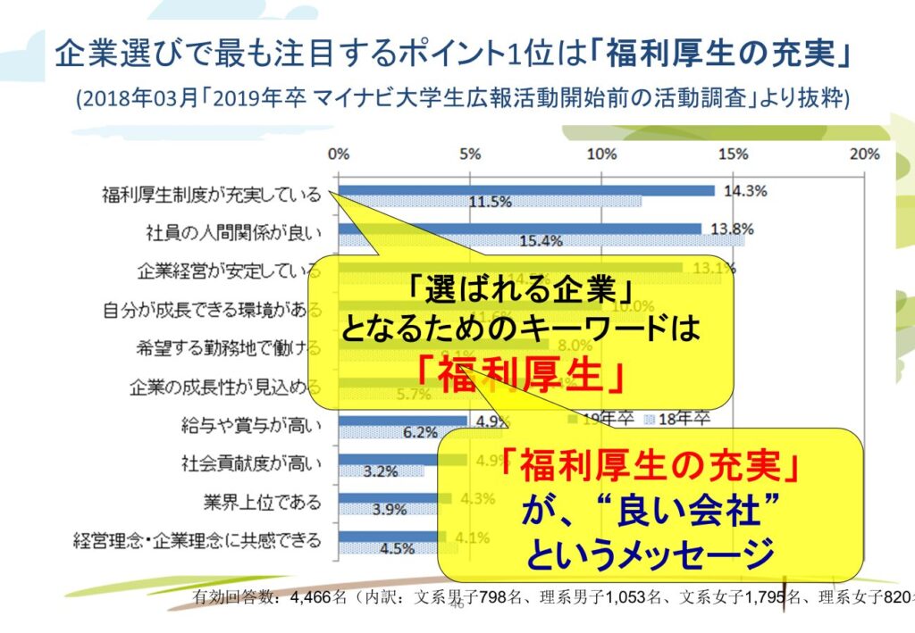 新卒市場、若年層市場では「福利厚生の充実」をアピールできる企業は採用に有利となる。
